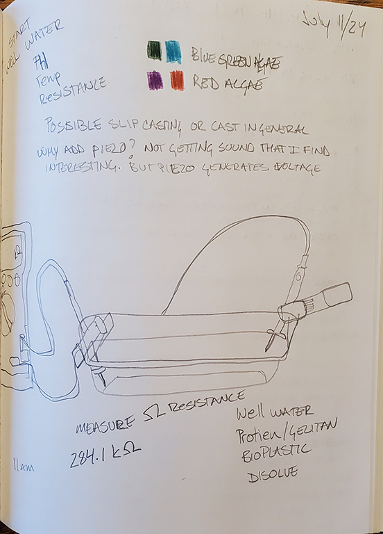 To experiment with water in this way I made dissolvable solids out of bioplastics. The idea was that if I had a solid that could dissolve easily in water, I could measure the dissolution over time and use that measurement as a timing mechanism in an interactive installation. Here water is not the subject but an active agent that can drive a narrative. I conducted these experiments at my family dacha (cottage) before the group met.