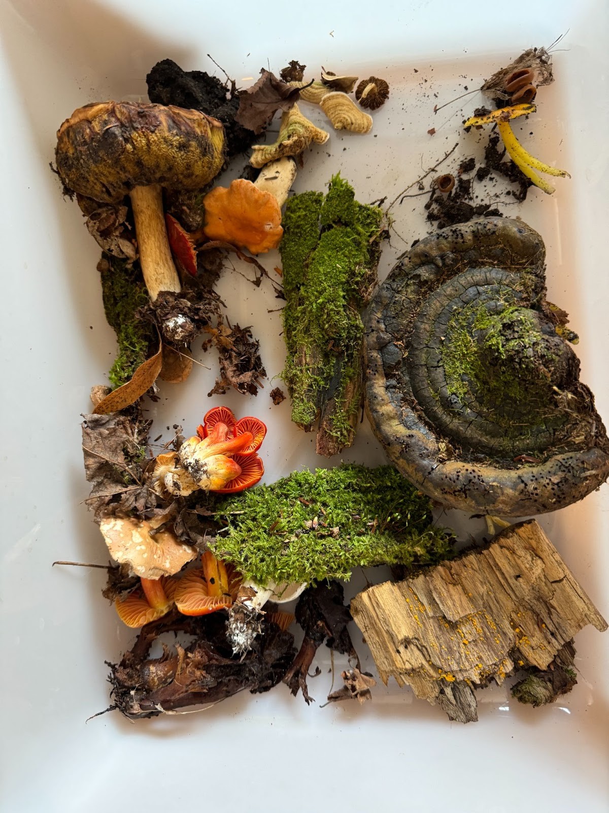 In September 2024, field research was conducted at Ferme Lanthorn, Wakefield, and the surrounding wetlands. Various mushrooms, including Coral Fungi and Dyer’s Polypore, were collected. These mushrooms form direct symbiotic relationships with trees such as willows, spruces, and pines, thriving in these ecosystems.